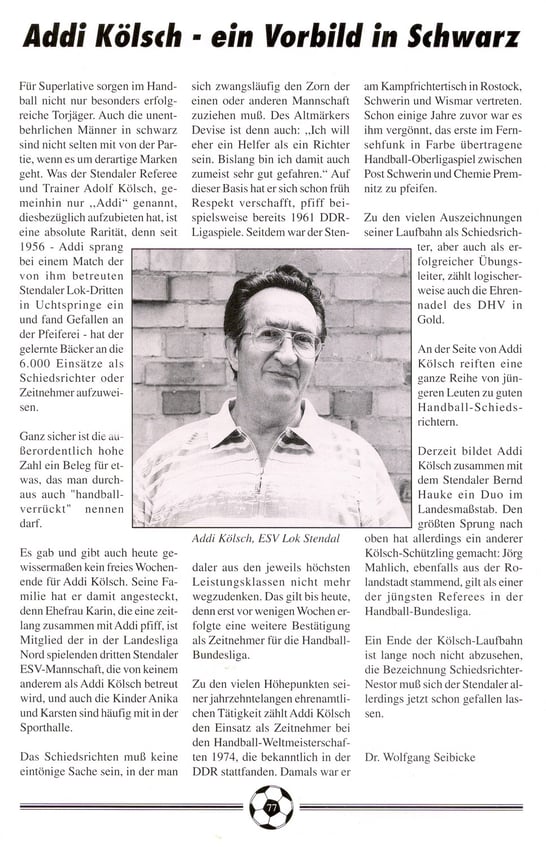 Addi war seit Jahrzehnten für den Stendaler Handball und darüber hinaus als Nachwuchstrainer aktiv.